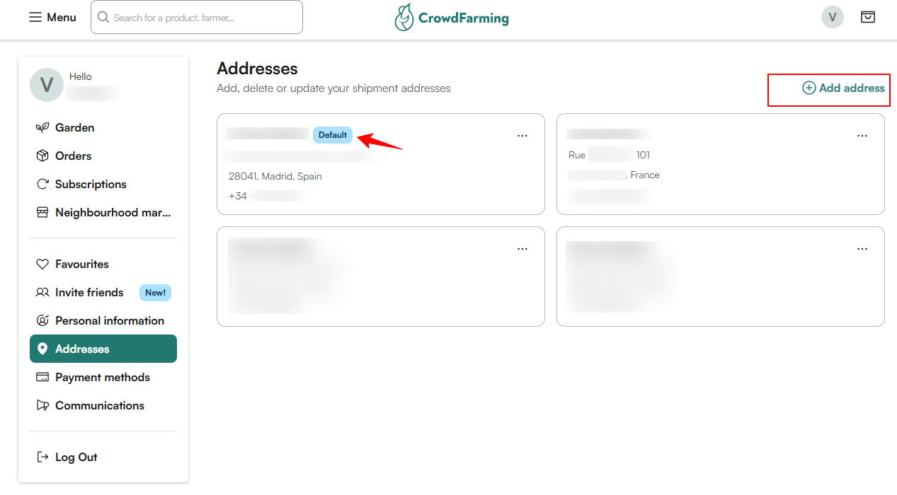 📍 Adressen: Füge deine gespeicherten Lieferadressen hinzu, bearbeite oder entferne sie und lege eine als Standard fest.
